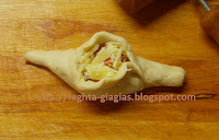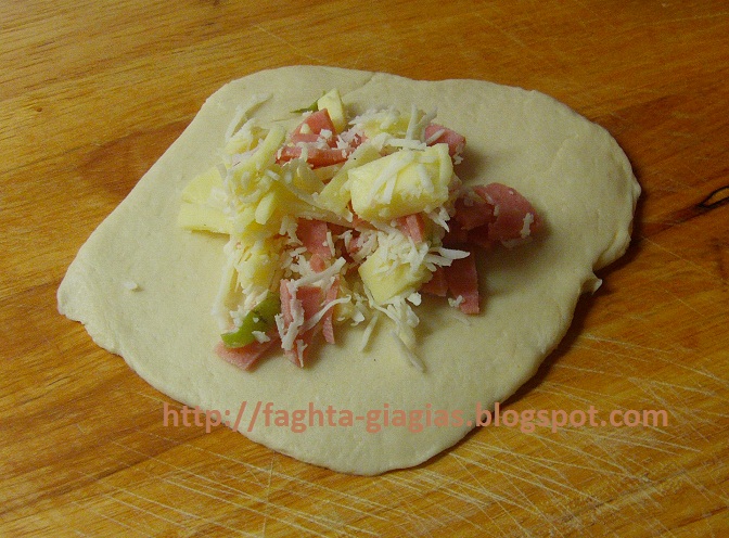 Χωρίζουμε τη ζύμη σε 22 - 24 μπαλάκια και τα ανοίγουμε σε οβάλ φιλαράκια 12 εκ. περίπου.