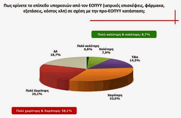 Το βασικότερο εύρημα της έρευνας, αποτελεί η δυσαρέσκεια για τις παρεχόμενες υπηρεσίες του ΕΟΠΠΥ.